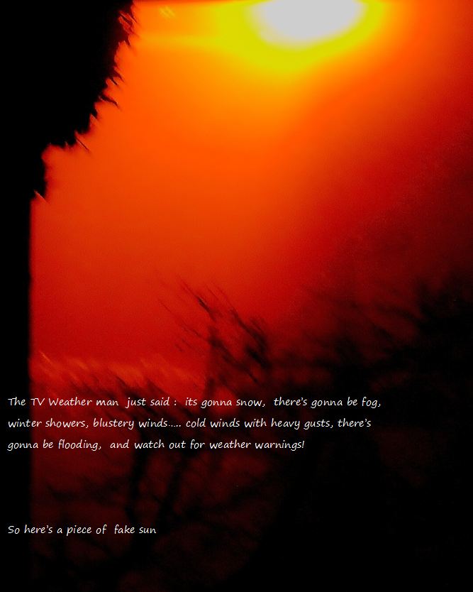 Yes they are always full of good cheer!!! Those words ( and there were more) came on TV just as I named my bit of photo-shopping ‘fake sun’…….