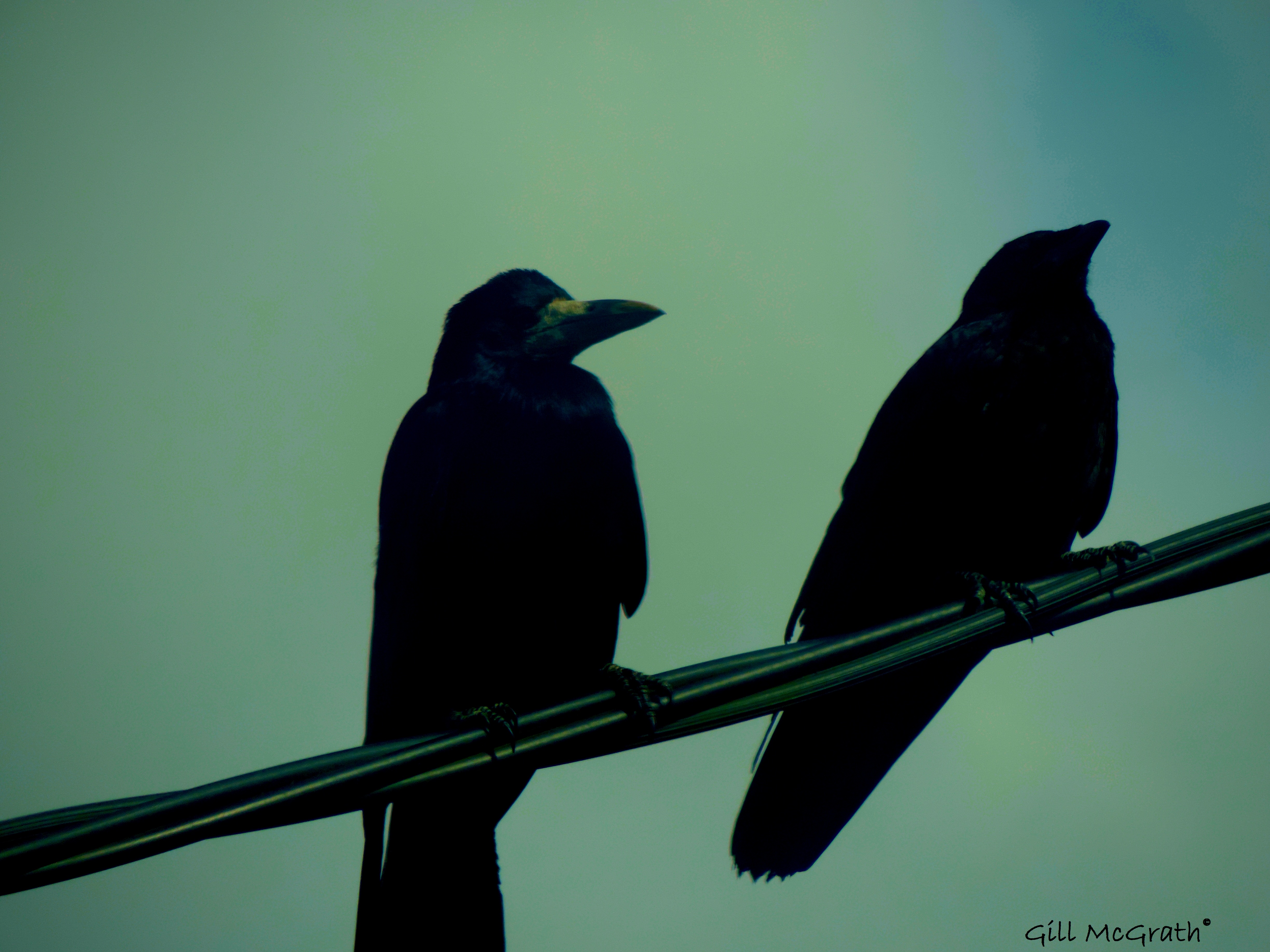 Well the full moon didn’t show up here. Too much cloud and rain and thunder. So here’s two rather handsome crows. And one danced today…….