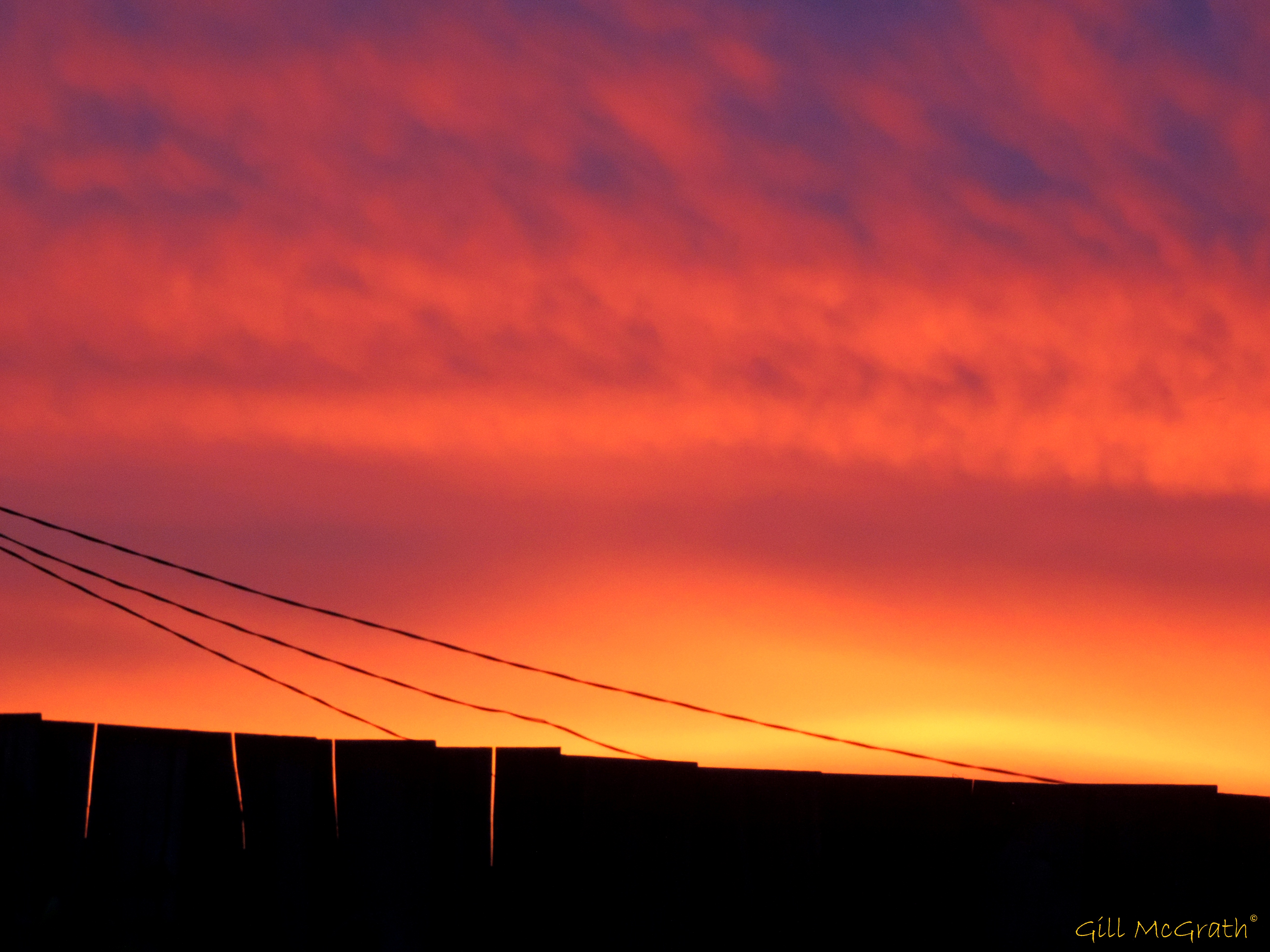 Basic Sunset 9.30pm beyond the fence and up above the sky was orange….tonight Gill McGrath Share this: Click to share on X (Opens in new window) X Click to share on Facebook (Opens in new window) Facebook More Click to email a link to a friend (Opens in new window) Email Like Loading... Related