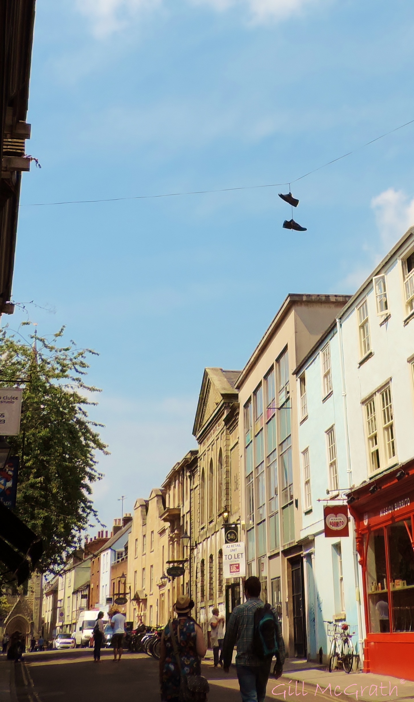 You say you have never seen anyone in the act of chucking shoes so high! It may be a ‘first’ for dangling shoes just here , where this pair hang high , strung up , just short of the students union and right above several drinking cellars, but it may be a well rehearsed ‘hand me down act’ where flinging shoes about and landing them exactly, is common enough. And this is just another pair hurtled high into the air!