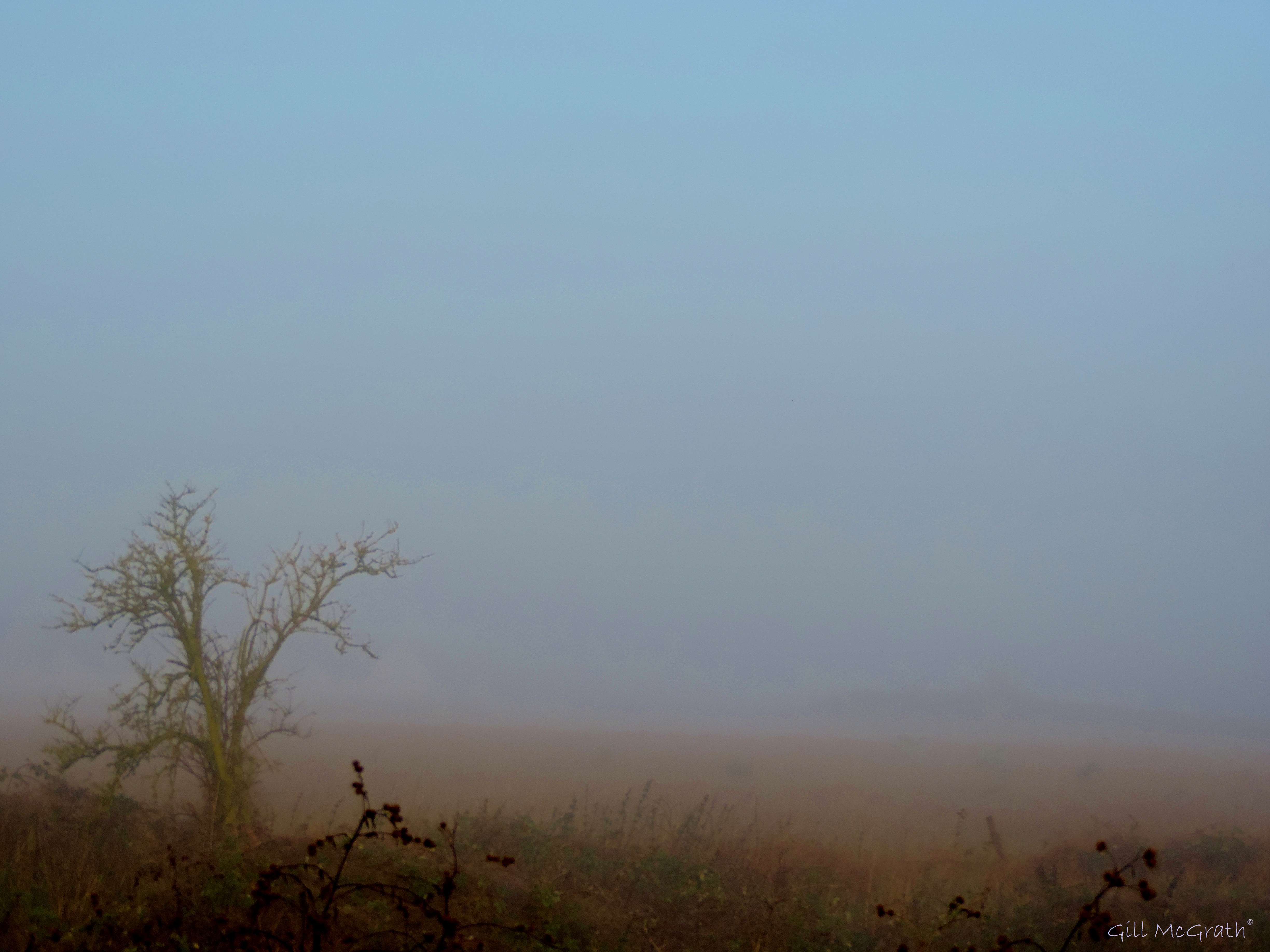 Now an Autumn Desert on the hill a mirage an illusion where rolling mists reveal a leafless tree close to a new horizon and an even wider space for dreams Gill McGrath© 9.00am this morning (that was cold!) Share this: Click to share on X (Opens in new window) X Click to share on Facebook (Opens in new window) Facebook More Click to email a link to a friend (Opens in new window) Email Like Loading... Related