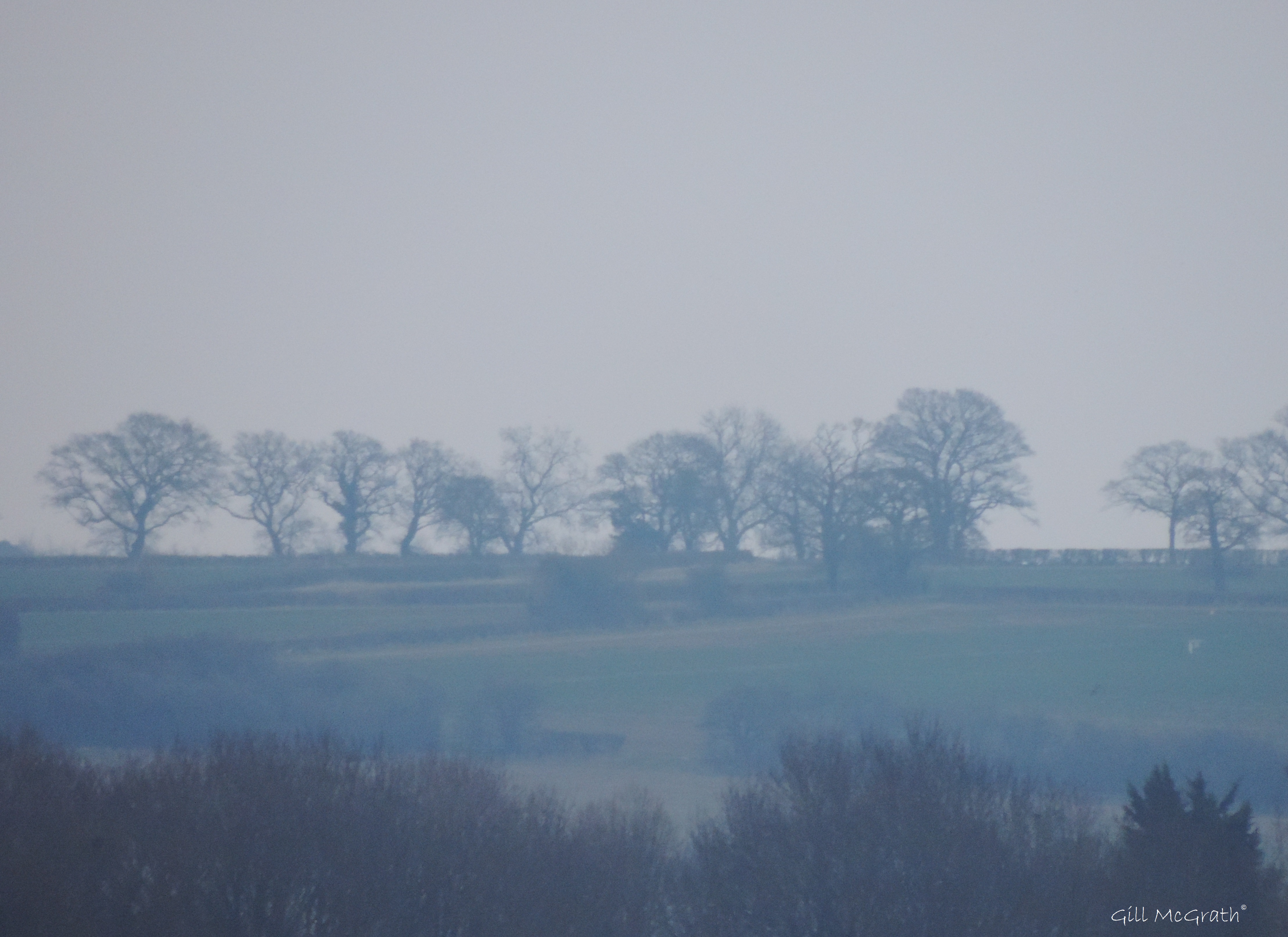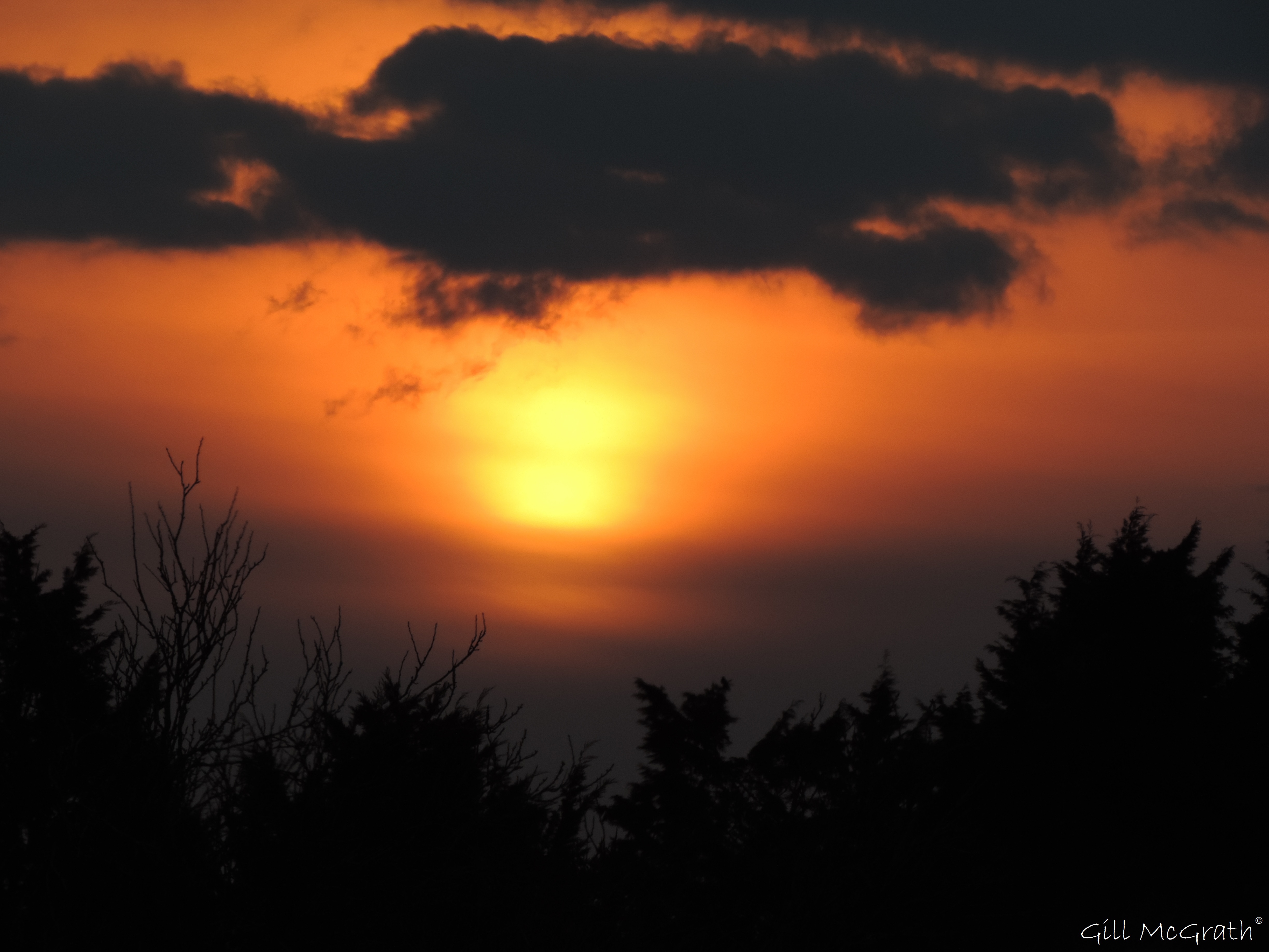The view of those trees are where the sun comes up and the birds sit on that wire looking at the action! From where i am looking at the sunset today i can still see the trees where the sun comes up ……the birds arent usually there in the evening but they were there this time ignoring the sunset in the other direction! There are only seconds between the last sunset shot and the birds looking at the grey. I am in one place just here and taking photos of the sun and the opposite field and the little trees …. Quite a long strip on the horizon which change color all day! I have a years worth of photos of that spot…. Sort of studying it! It goes yellow all shades of blue pink and endless shades between! Its my muse!