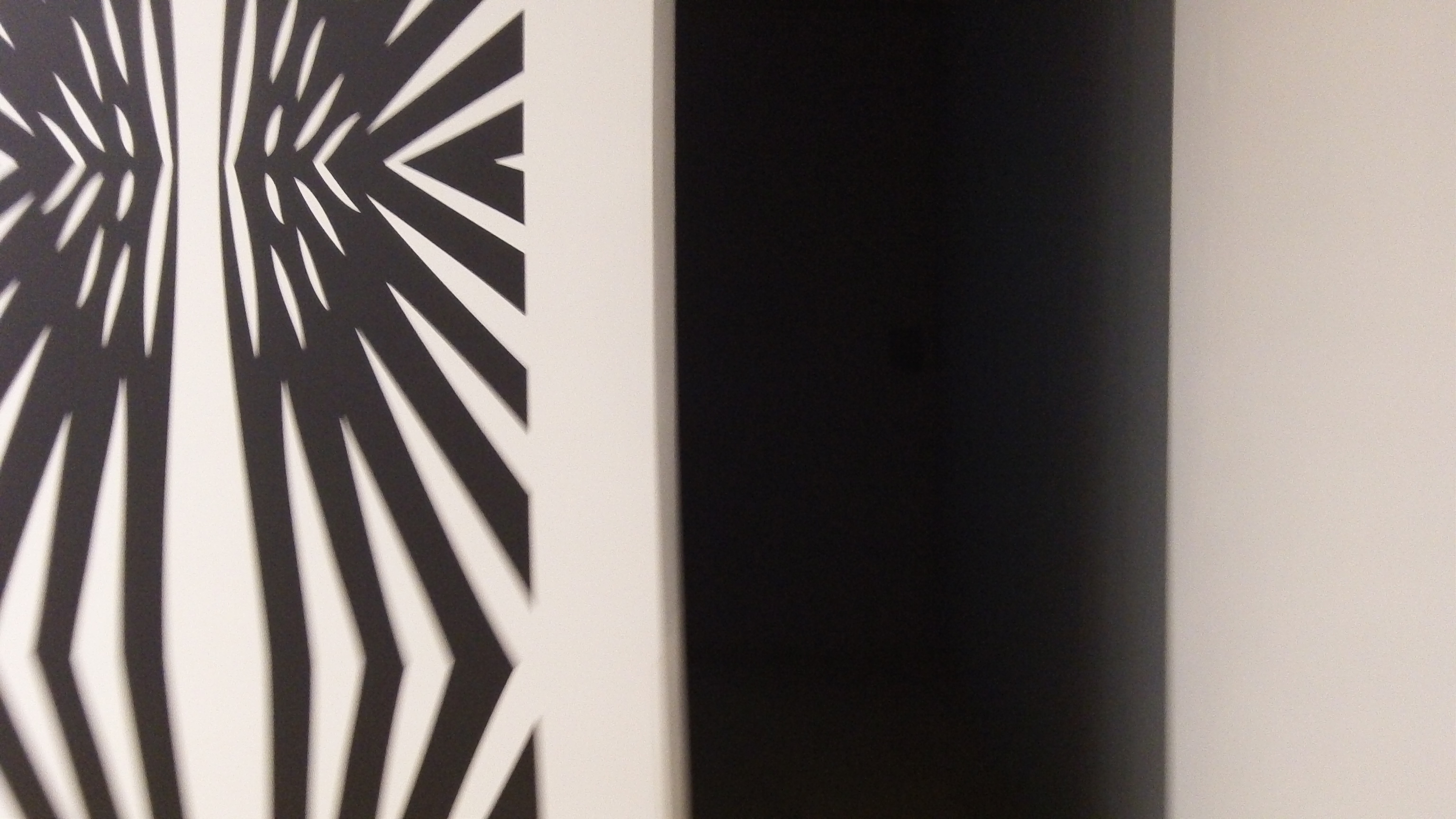 For me, it was late already when I found the door to the exhibition space on the first floor which opened it onto a huge, rather alarming black and white wall painting in front of me.