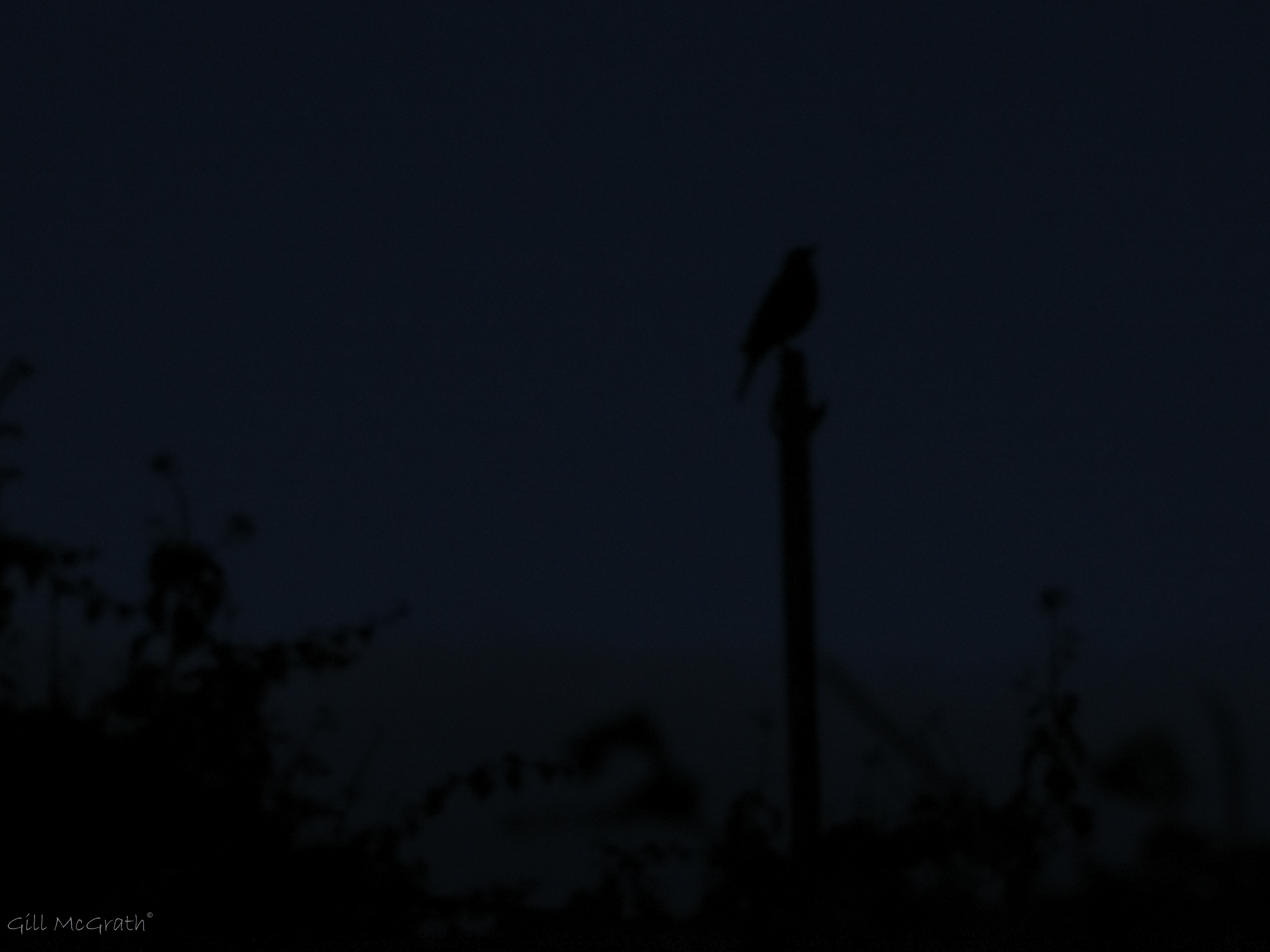 The only glimpse of the sun this morning blinked on the side of a solitary van trundling along the top road. A lonely pigeon sat on the kissing lines looking lost and ready to fly…… and then I saw it…. one wet feather ~ covered fresh in dew