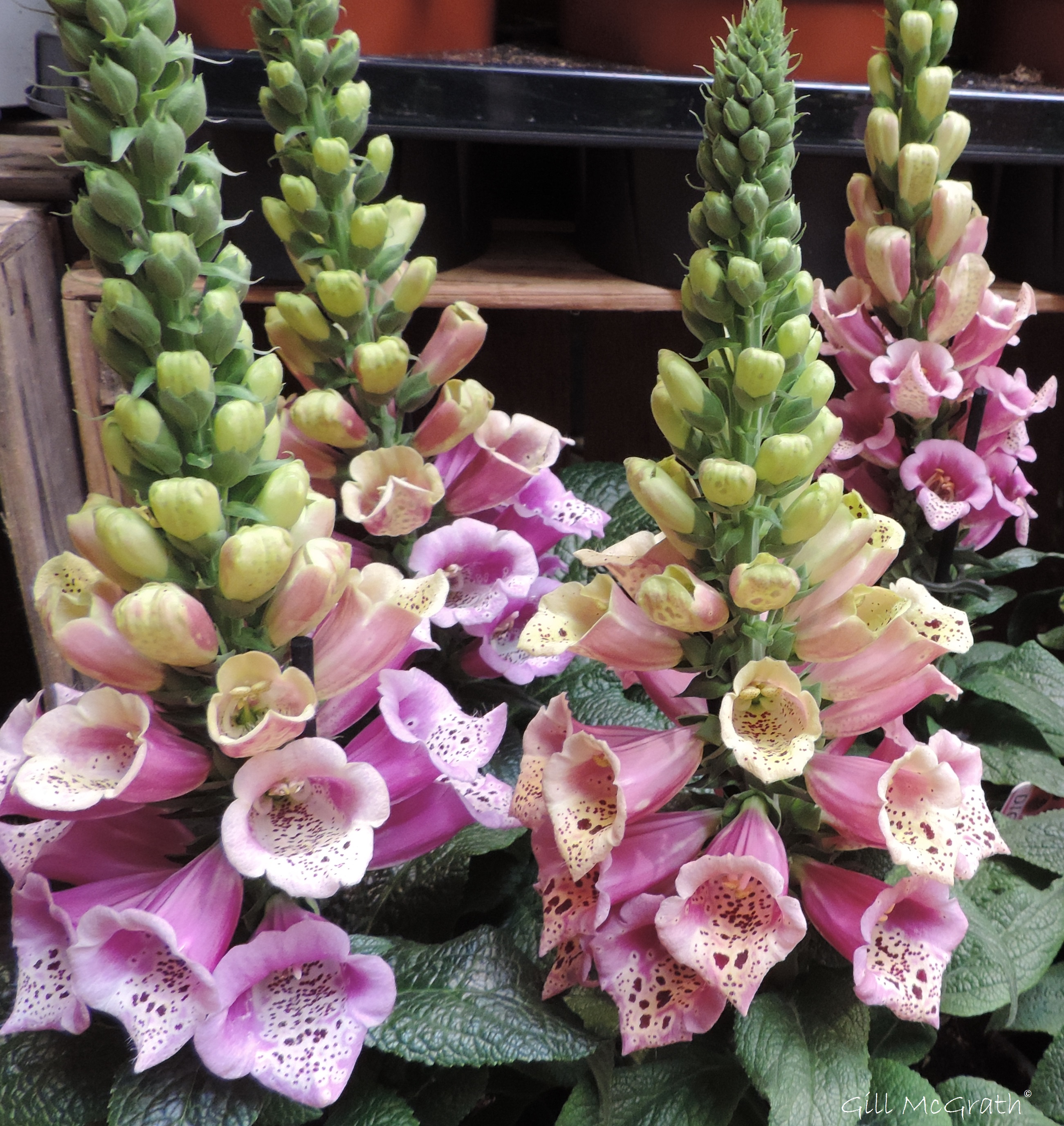But the compact foxgloves I found later were lined up in a flower shop in town at £7.99 (one per pot)… and that’s where they stayed!