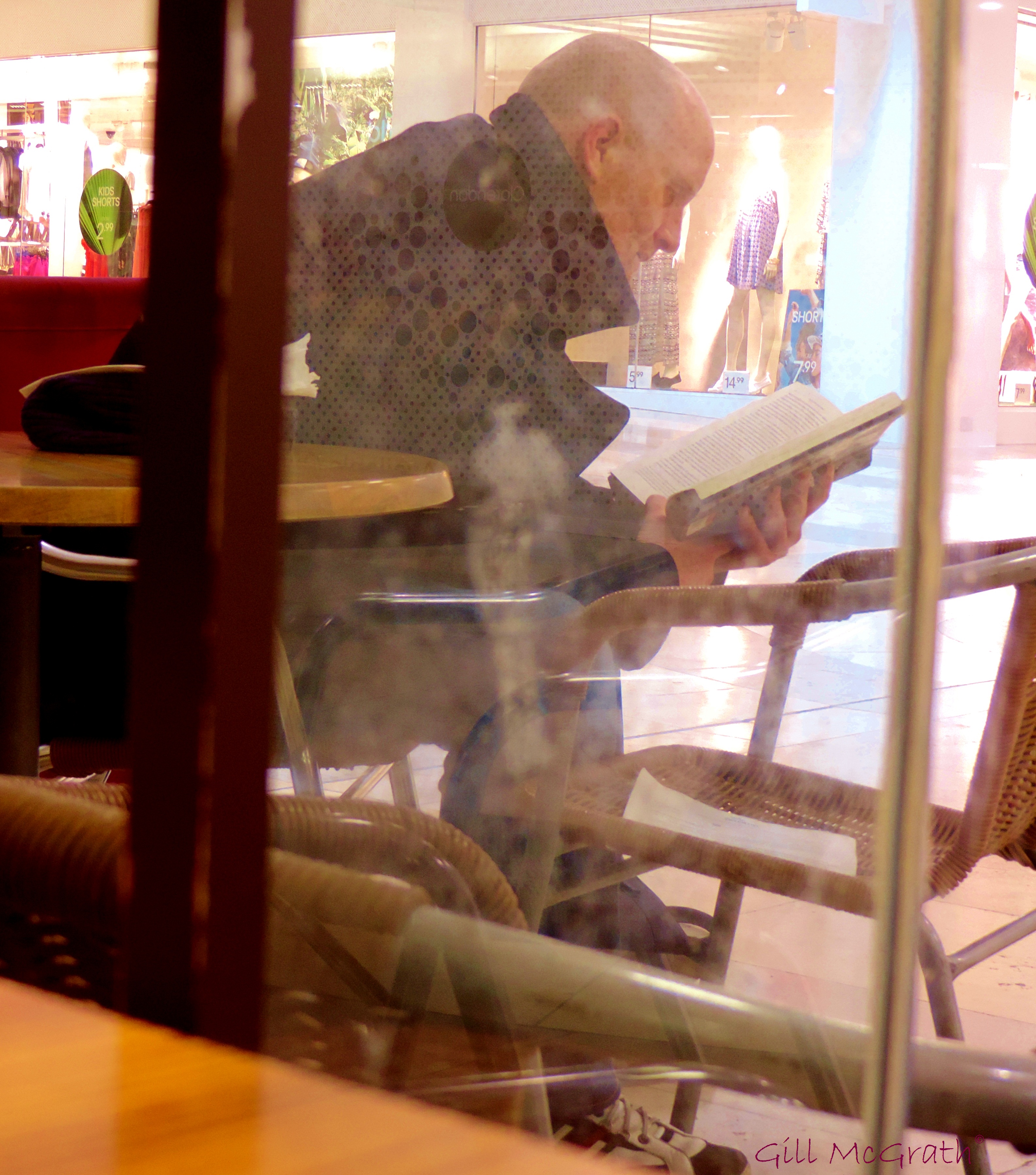 He is not aware. He does not stare. He reads. He cannot ignore.