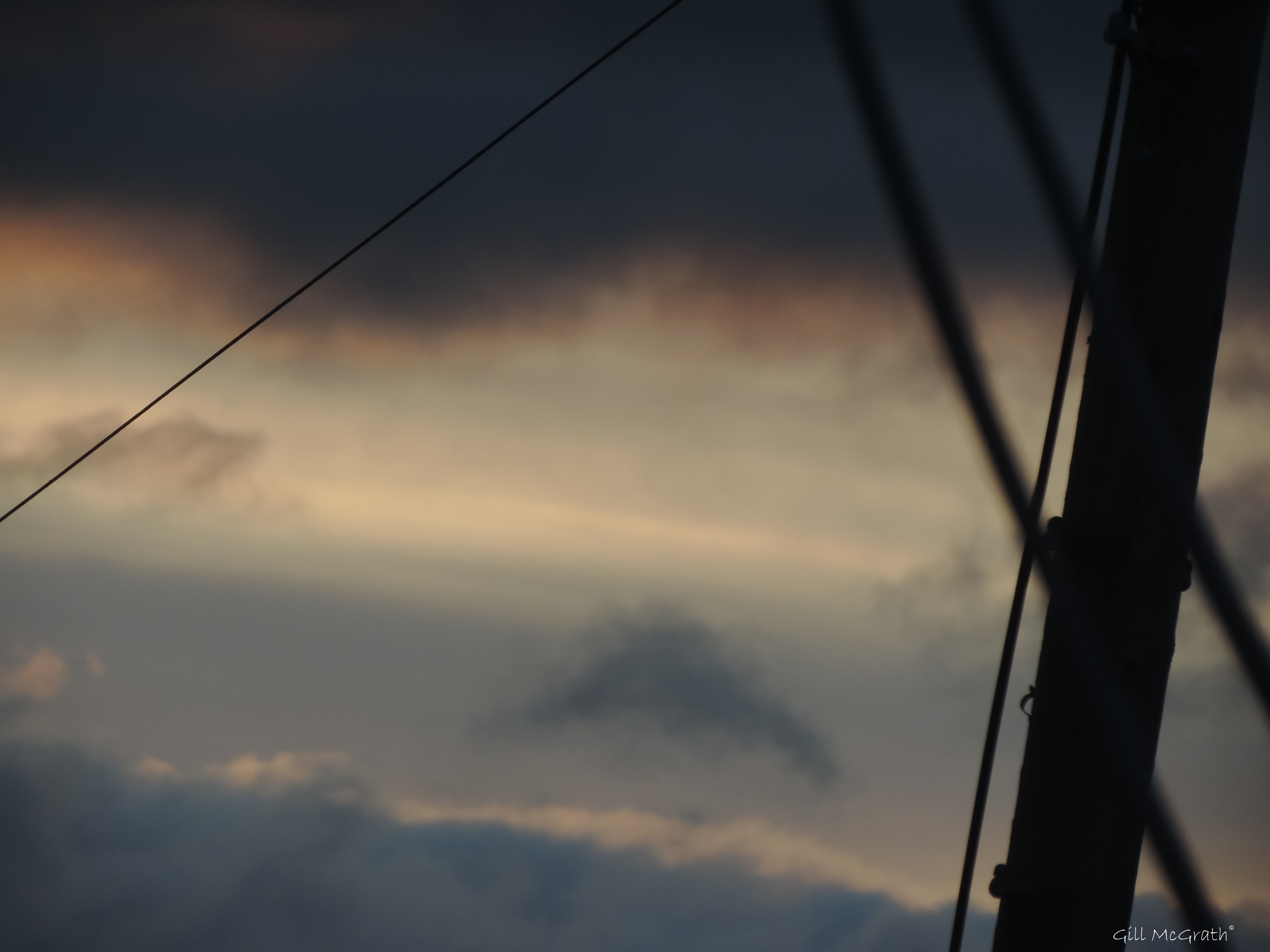 At 3.30 pm (back home) and looking over the garden from the window that looks towards the sunset, the sun could be seen in bright free fall again…..