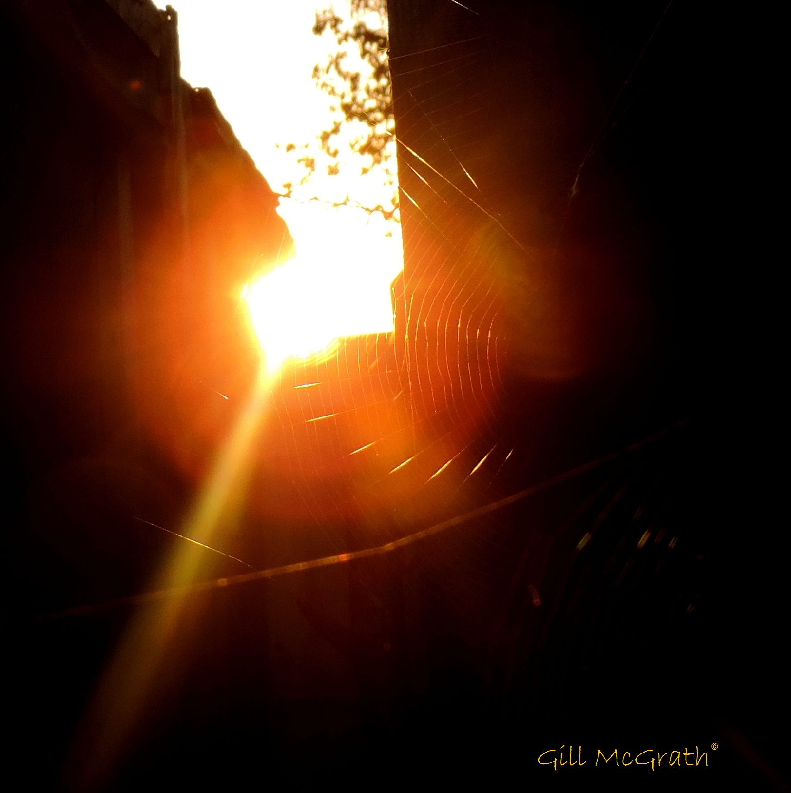 Dear Emma, Here is the virginia creeper. It is turning red.I guess the spider is still in there somewhere. I didn’t see him hanging around. perhaps he went into hiding yesterday….maybe he didn’t like the sun.Maybe he could see me creeping about,but I couldn’t even see the web. The gentian violets are sulking in the rain today.Take care.love Rosie