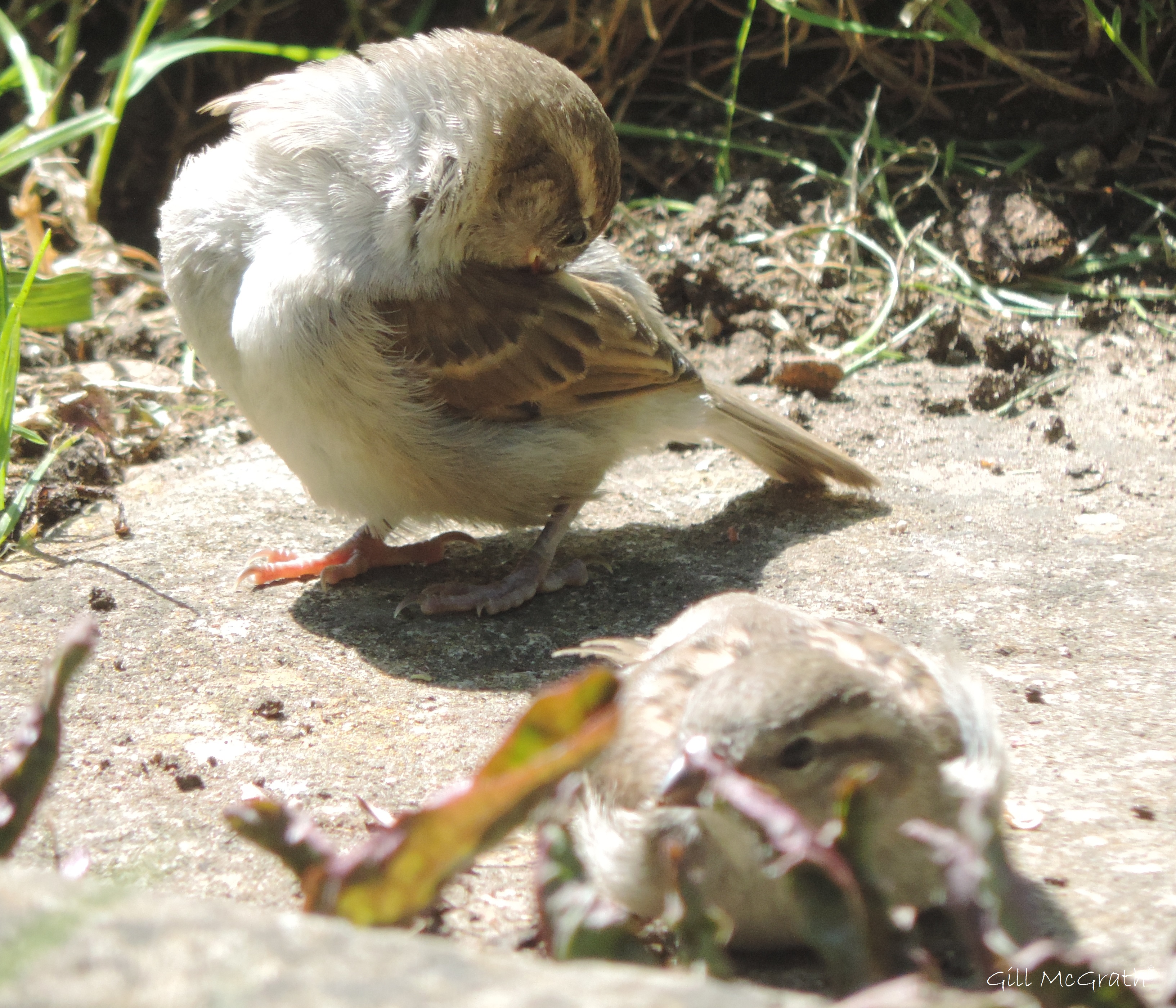 Gill McGrath© June 18 afternoon. a family of sparrows flew the nest today