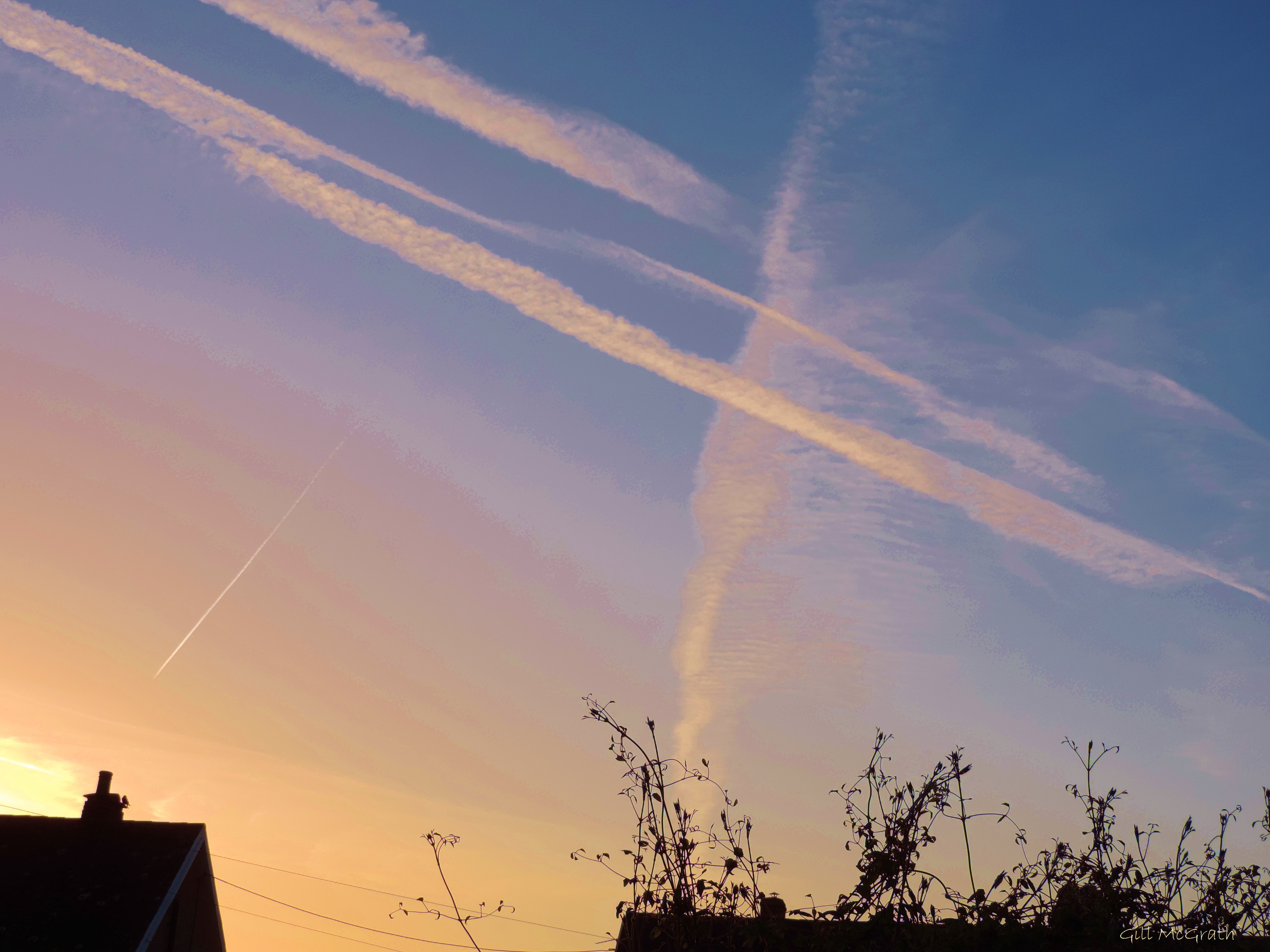 I watched a line become a kiss; an X against the blue !