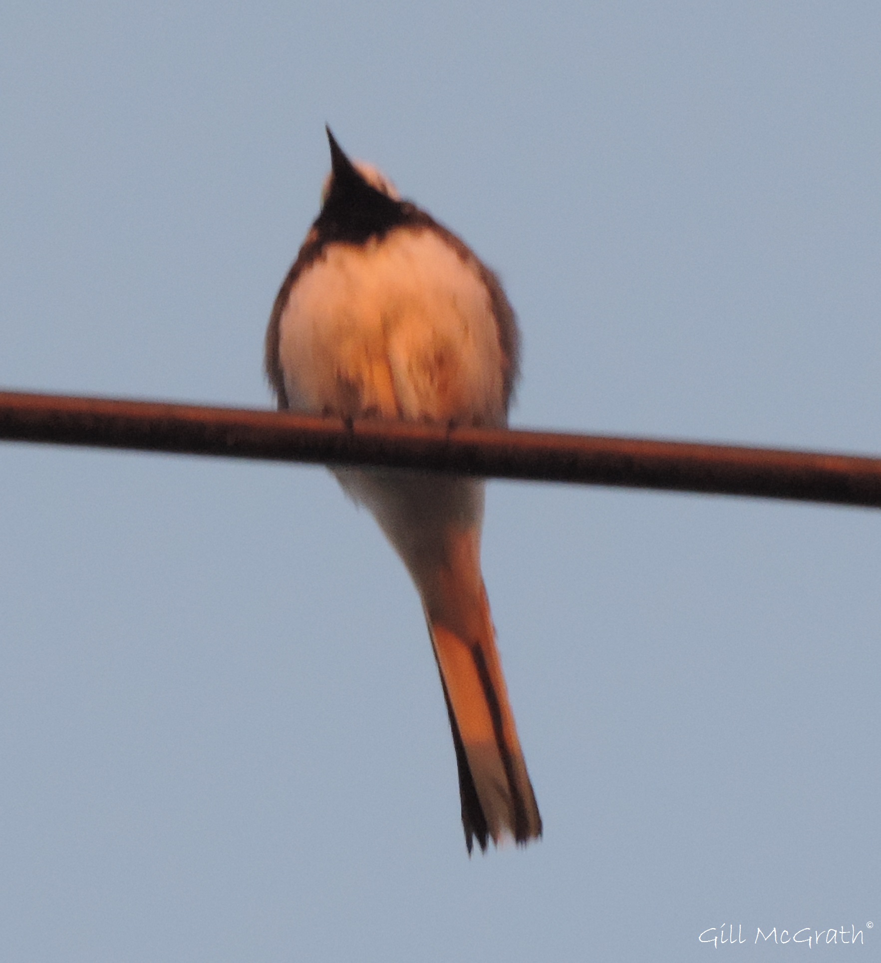 This little bird looks a bit of a peach as picked up by the camera in the morning glow earlier. The tiny white feathered bird was simply sitting there facing the sun, all on his(her) own. So just three bleary shots! and then it flew away; no time for anything clearer or any more shots. It simply disappeared. I would love to identify him(her). I have never seen anything like him(her) round here before although it could be the visitor who fleetingly visited our bird bath a day or two ago.