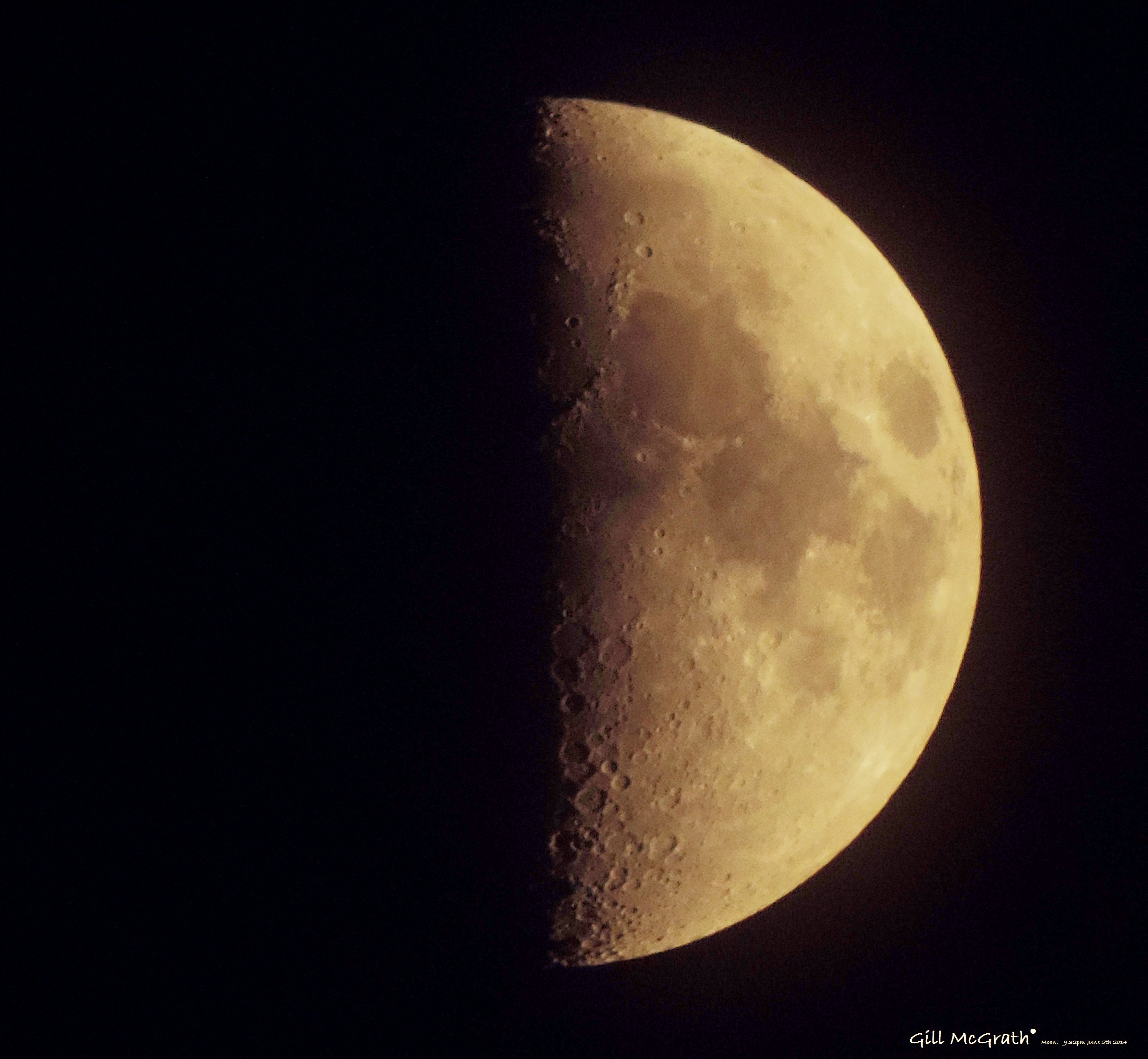 Long time no see. Bit of a lonely road to the field where the rabbits are, where the sunset goes down.But after what seems like weeks of no moon in the sky, he arrived last evening!…. Its either been too cloudy or too something at the time the moon might have been there to make a brief appearance….. Either way he was missed even if he could be seen! But last night (as a result of the moon being clear and bright up there above where the kite is caught up in the tree by the road I thought I would take a walk, over to where the sky was getting pinker. And…. As I walked, the moon kept up with me, side on, all the way there. And he stopped when I stopped! And the biggest miracle of all he turned round and walked with me all the way back home, an hour and a half later. One of the times When he stood still I took this photo (raw, so the sky is black though it wasn’t)so here is the close up for you. The best I could do! I reckon he looked better through the trees a bit farther away actually ( on auto) and the sky deep blue. Less rabbits in the field too and the ones that were there ran away! So you got my moon walk! Love Rosie (love to all)