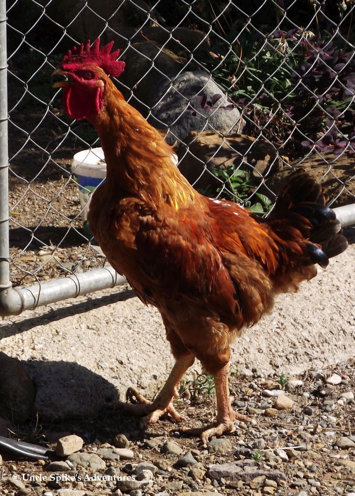 Anyway, talking of Great Aunt Spike and her arms n legs; well, that’s part of my problem. In my excitement to scoff said biccies each day, I started to follow her. Then one day I wanted the biccies before she was ready, and then sort of chased her… Now’ I’m a placid sort of chap really, but biccies are just sooooo yum, that I sort of lose myself. Then one day I went too far, and side-kicked Great Aunt Spike with my spurs (rear facing fighting talons), tearing a small gash in her leg, and receiving a few cuss words and a wave with her stick in doing so. Great Aunt Spike told me off big time, but being a bolshie teenager, I didn’t listen much.