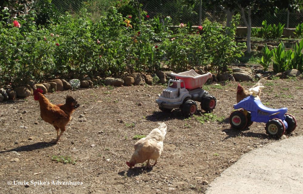 Every day, Farmer Spike lets us out from under the steps, a.k.a. ‘home’, and throws us a hand full of barley each to peck at. To be honest, Farmer Spike is a nice guy, as even though we roam free each day, and this food is not a necessity, we’ve come to expect such offerings every morning and again at dusk.