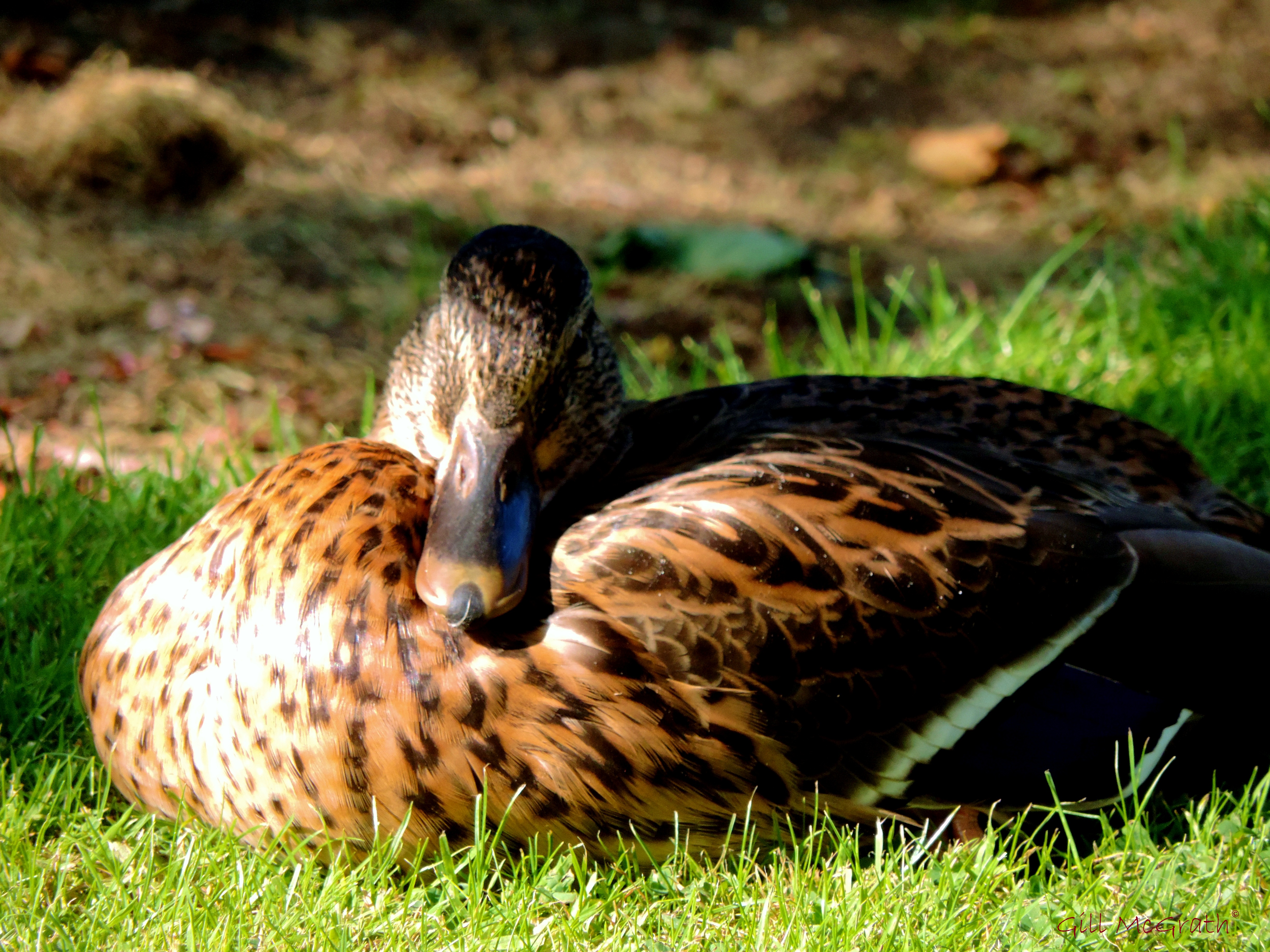 Today, a lot higher up the same hill but still in a direct line to the same shallow water….. I found today……. in my garden a pair of ducks, under my fig tree! So now I am holding my breath! Are these two (especially the brown one) thinking of moving into my garden, sizing up a new space for next spring? Never seen ducks up here before, so maybe not, but I think I had better tidy up the geranium pots just in case! Gill McGrath©